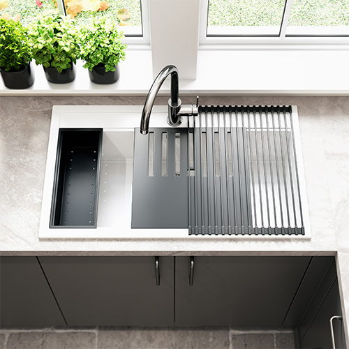 Cet évier maxi cuve semi-professionnel, fourni avec de nombreux accessoires, vous permet de cuisiner et remettre en ordre votre plan de travail en un rien de temps ! Vous ne pourrez plus vous en passer.