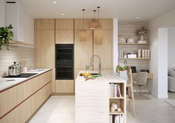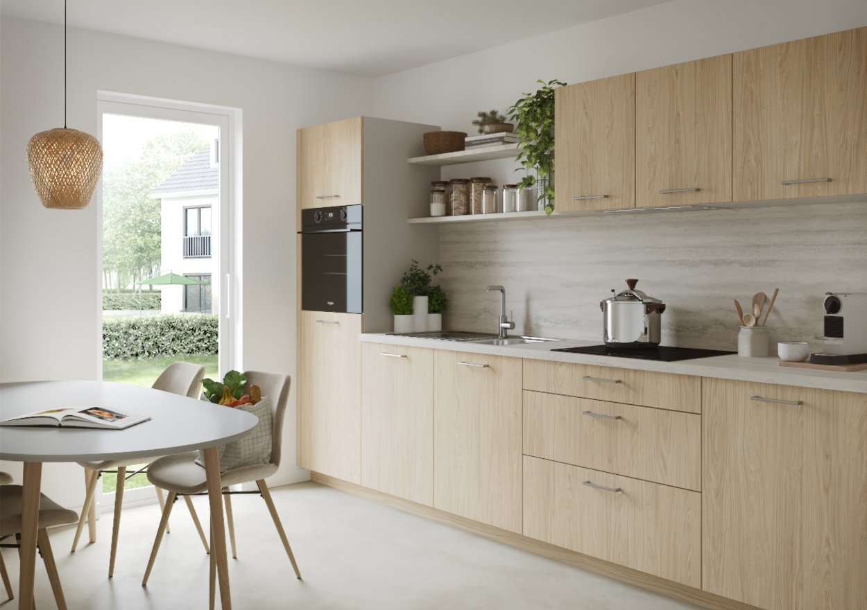 Imitation chêne et lignes épurées : la Linéa a ce je-ne-sais-quoi d’intemporel qui invite à s’installer. On papote, on grignote et, parfois, on laisse la vaisselle poireauter jusqu’au lendemain.
