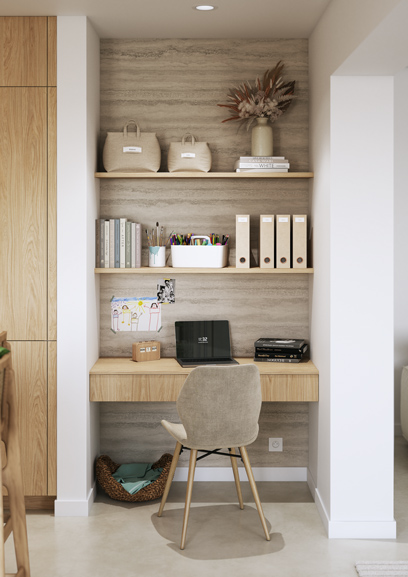 Pour bosser dur sans prendre toute la place. L’agencement est tellement fin qu’il devient un atout déco !
