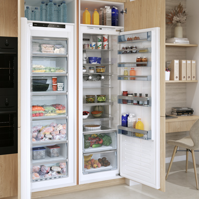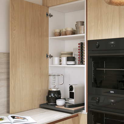 Avec ses nombreux rangements, la Linéa fait régner la paix entre vos casseroles ! Quant au réfrigérateur XXL, c’est simple : vous pouvez stocker une semaine de courses, les restes d’hier ET vos envies farfelues pour le prochain dîner.