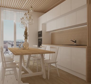 Les petites cuisines préfèreront un éclairage général assuré par des spots ou des appliques murales. Alors que les grandes, munies d’un espace repas, pourront s’autoriser un grand lustre au-dessus de la table.