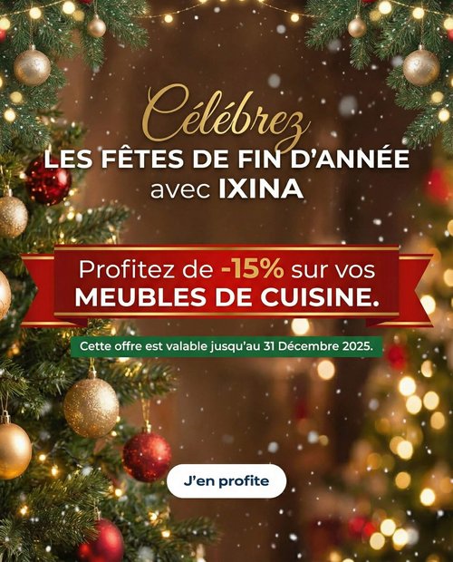 Célébrez les fêtes de fin d'année avec IXINA. Profitez de -15% sur vos meubles de cuisine !